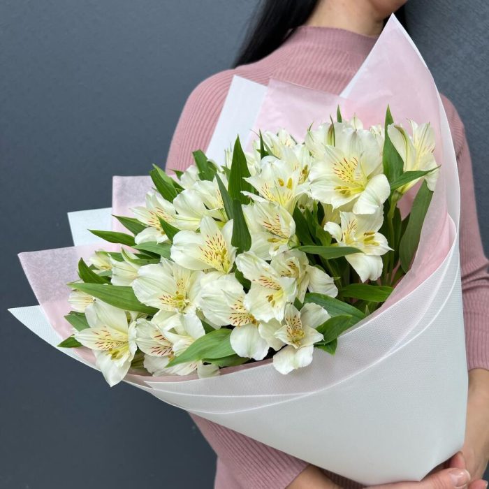 Альстромерия – 15 шт.Тишью – 1 шт.структурированны фаомиран – 1 шт.Лента – 1 шт.