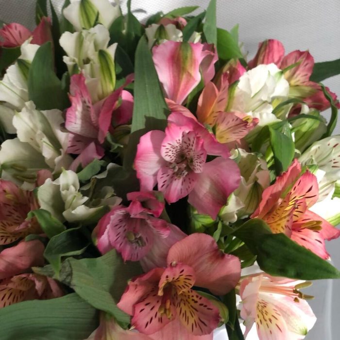 Альстромерия – 11 шт.Упаковка дизайнерская – 2 шт.Коробка шляпная – 1 шт.Пиафлор (оазис) – 1 шт.