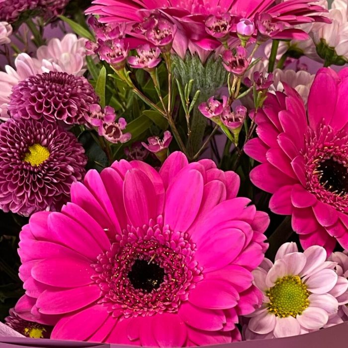 Букет с малиновой герберой “Любимка”
