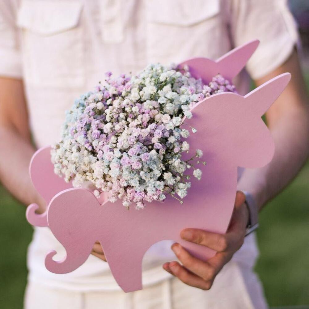 ящик единорог – 1 шт.Гипсофила – 15 шт.