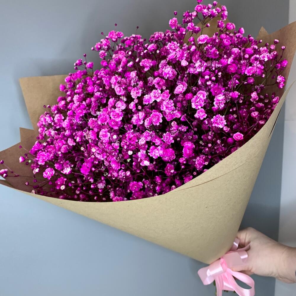 гипсофила радужная – 5 шт.Упаковка дизайнерская – 2 шт.Лента атласная – 2 шт.
