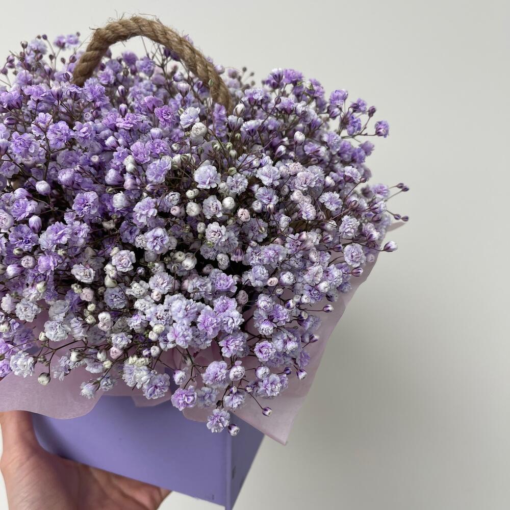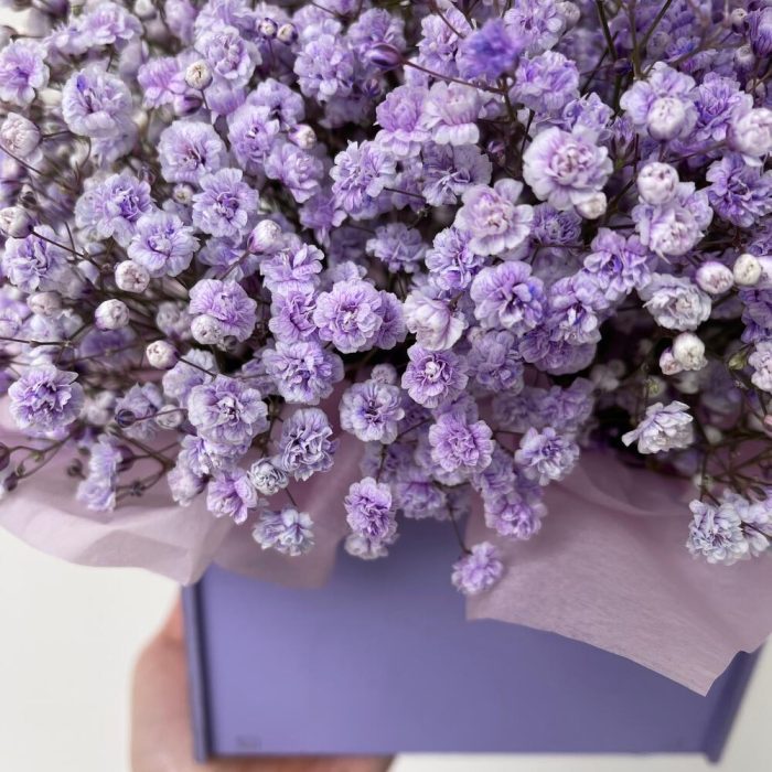 Деревянный ящик – 1 шт.Гипсофила – 3 шт.Тишью – 1 шт.