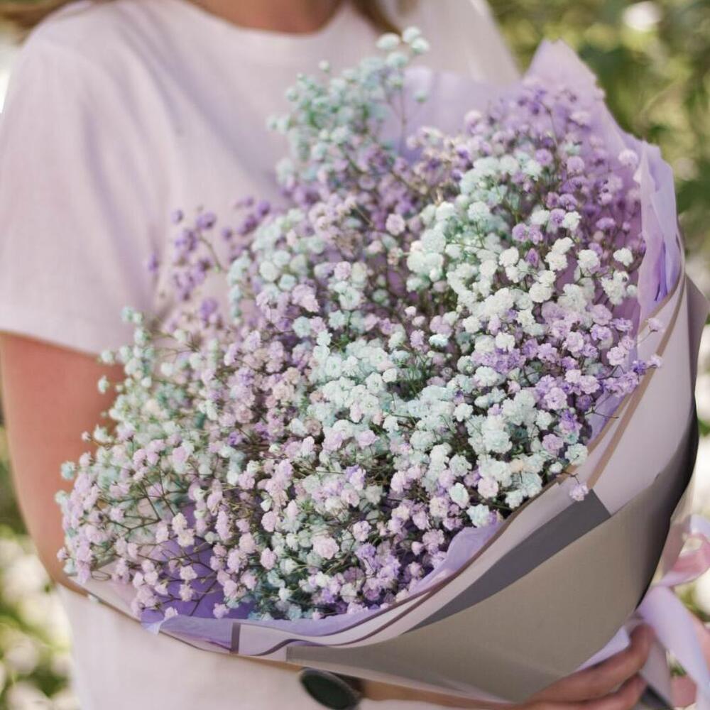 «Лавандовое созвездие» Букет из розы, гвоздики, статица и хлопка