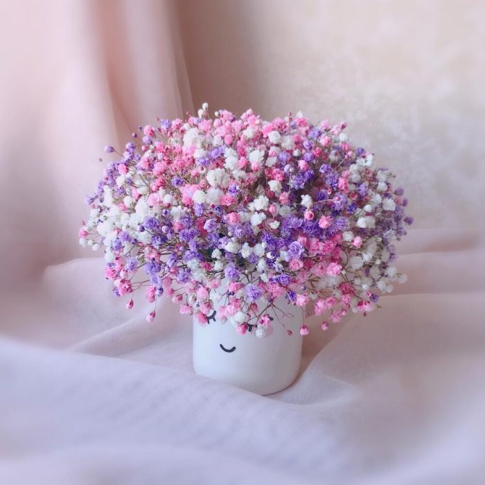 Радужная гипсофила в керамическом кашпо «Тирекс»