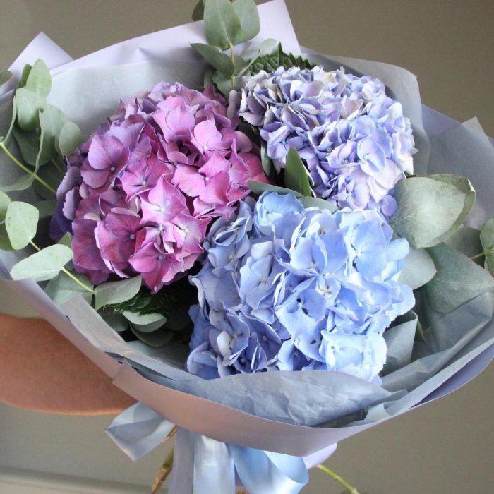 Гортензия – 3 шт.Эвкалипт – 5 шт.Тишью – 3 шт.Упаковка – 3 шт.Лента – 1 шт.