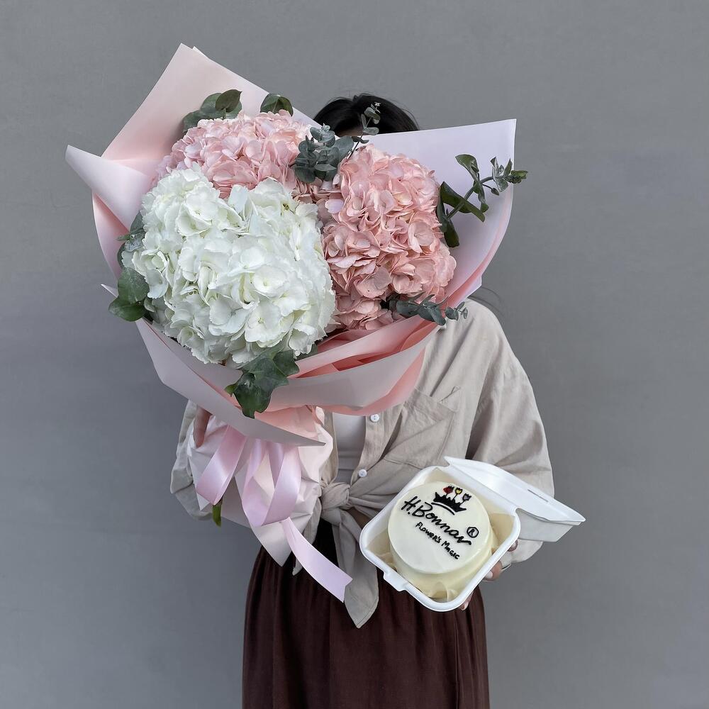 Букет из пионов и гортензий