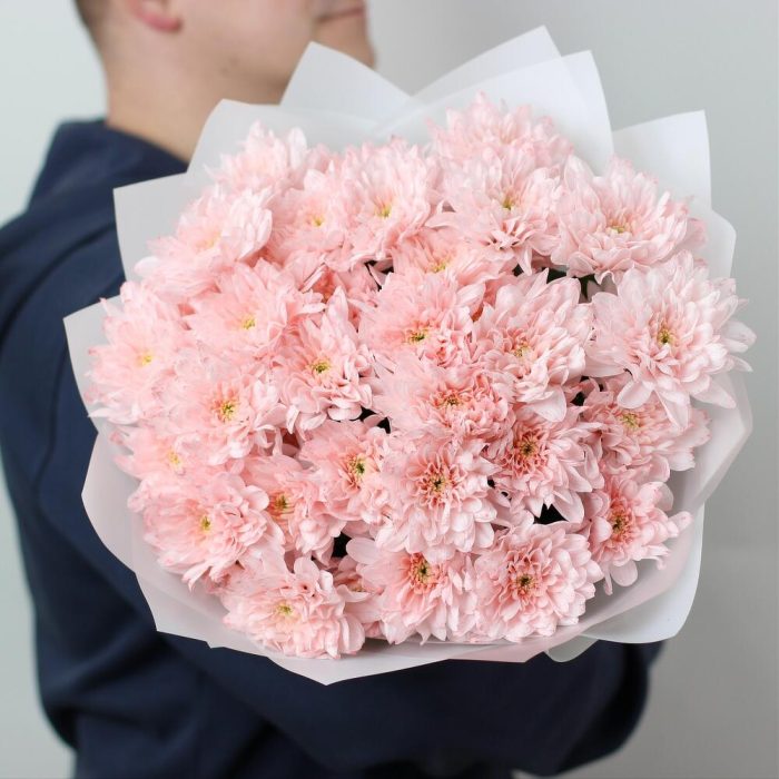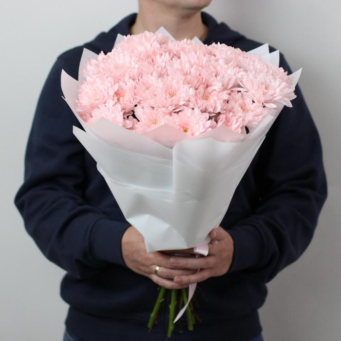 Лента атласная – 1 шт.Упаковка дизайнерская – 4 шт.Хризантема кустовая крашенная – 7 шт.