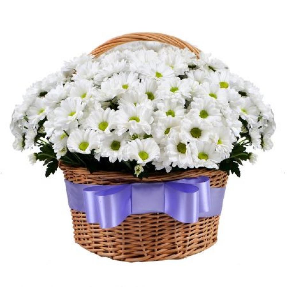 Хризантема кустовая – 9 шт.Корзина плетеная – 1 шт.Оазис флористический – 2 шт.