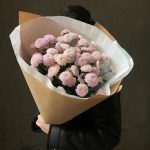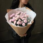 7 кустовых пионовидных роз сильва пинк с эвкалиптом. Букет 25 KimFlo