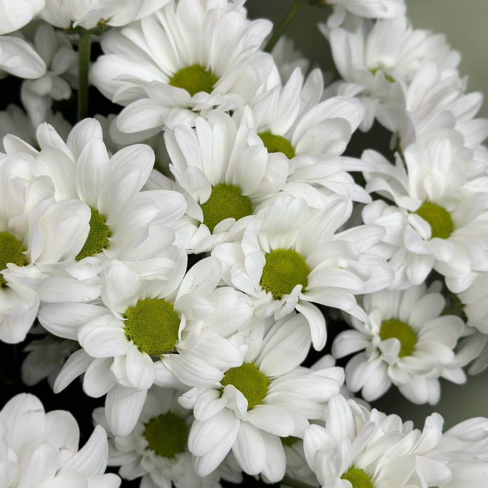 Букет хризантем (ромашковидных) с салалом, 5 шт