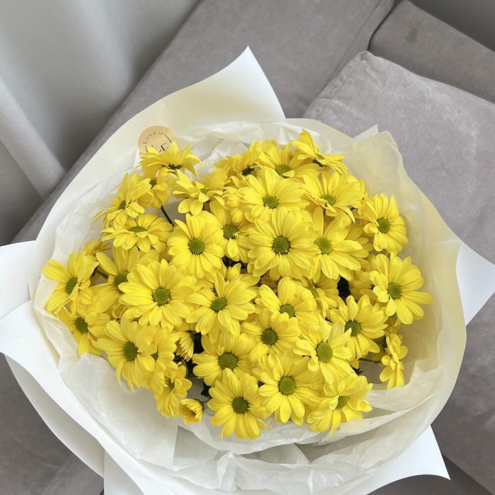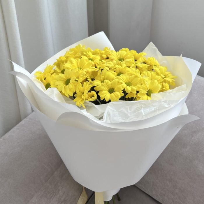 Хризантема Ромашковая – 7 шт.пленка матовая белая – 1 шт.тишью белая хрустящая – 1 шт.