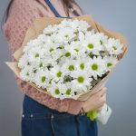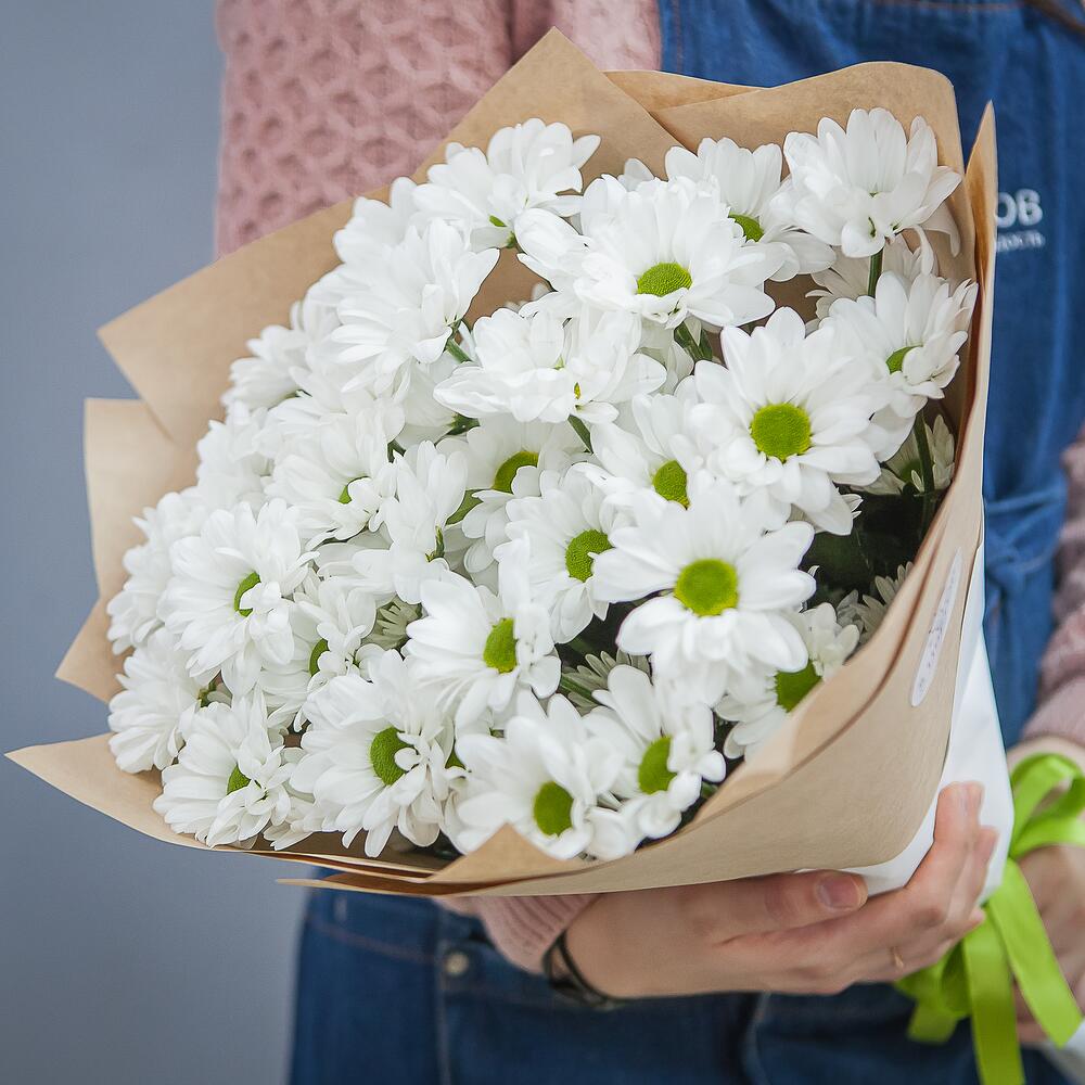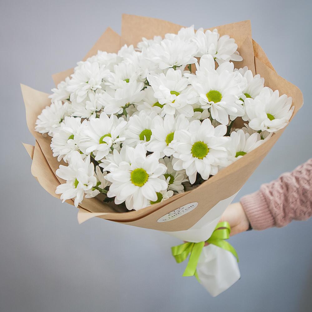 Букет из 7 белых хризантем Анастасия в стильной упаковке