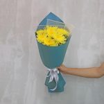 Букет из 7 желтых хризантем Анастасия в стильной упаковке