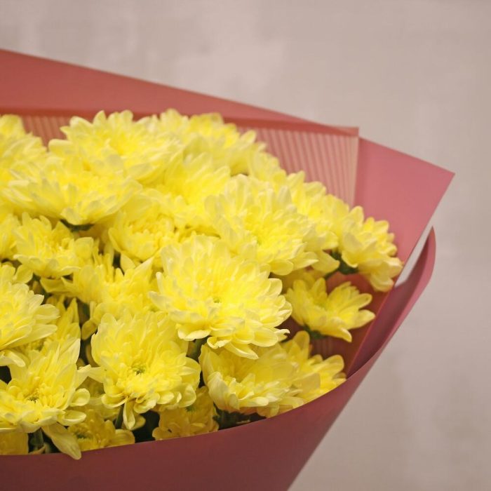 Букет из 7 желтых кустовых хризантем в стильной упаковке
