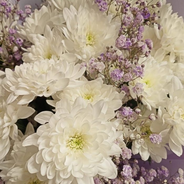 Букет из кустовых хризантем с гипсофилой