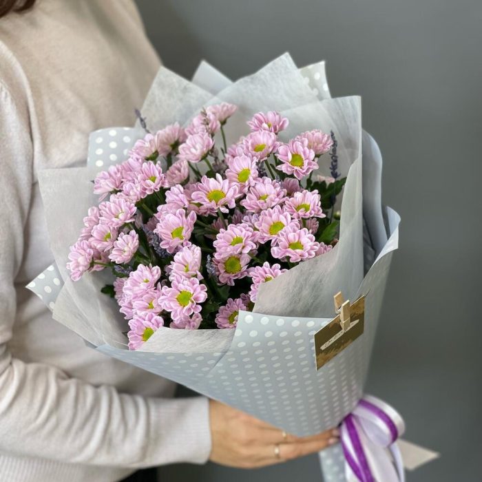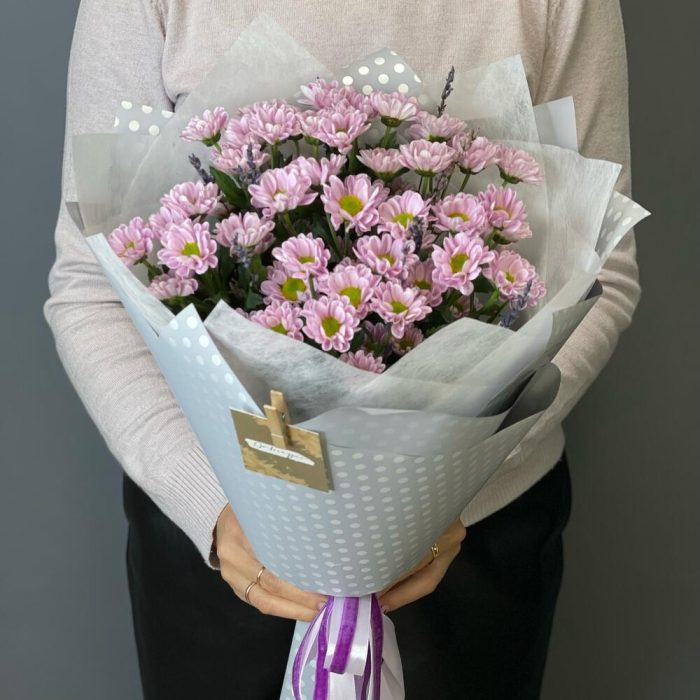 Букет с нежной кустовой хризантемой “Лавандовое лето”