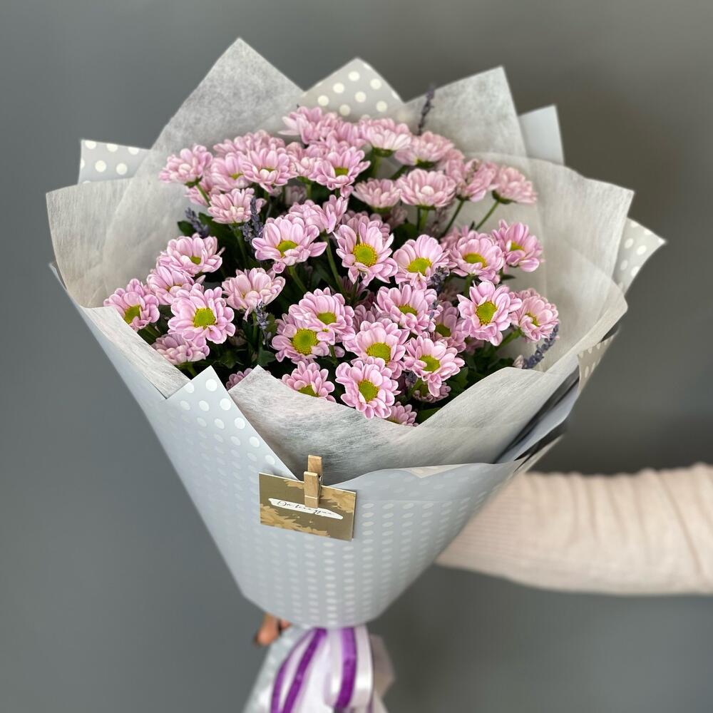 Букет с нежной кустовой хризантемой "Лавандовое лето"