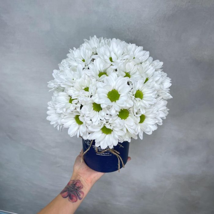 Хризантема Кустовая Бакарди белая – 5 шт.Коробка 12d – 1 шт.Мешковина – 1 шт.