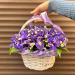 Ирис – 31 шт.Матрикария – 5 шт.Корзина плетеная – 1 шт.Оазис флористический – 1 шт.