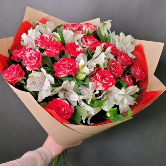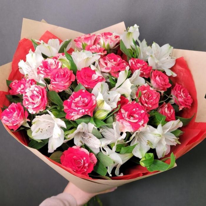 Букет роз и альстромерии «Приятные моменты»