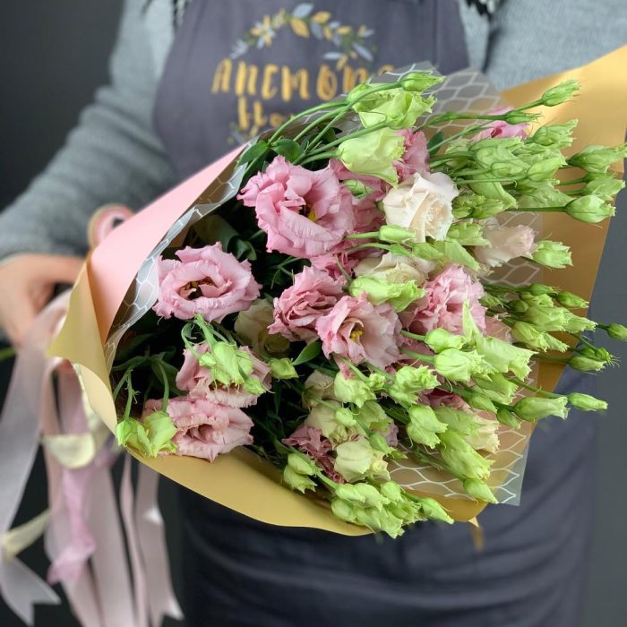 Лизиантус – 9 шт.Упаковка дизайнерская – 2 шт.Лента – 2 шт.