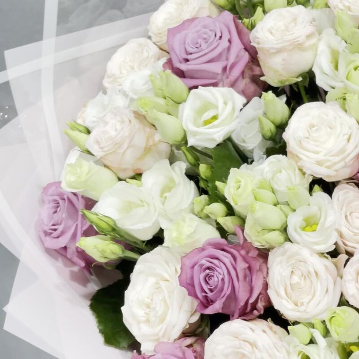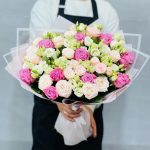Букет в таком сочетании нежности и легкости подарит только самые искренние и положительные эмоции. А стильная упаковка отлично дополняет его.Уход :1. После доставки букета обязательно подрежьте стебли на 1-2 см под косым углом.2. Налейте воду в вазу минимум 2/3 от высоты букета . 3. Меняйте воду , мойте вазу и подрезайте стебли каждый день. 4. Храните Цветы подальше от солнечных лучей, тепло-обогревателей, фруктов и сквозняков. 5. Если букет был доставлен в минусовую температуру, дайте цветам полежать 15-20 минут для того , чтобы они могли принять комнатную температуру. Затем подрежьте стебли и поставьте в вазу.