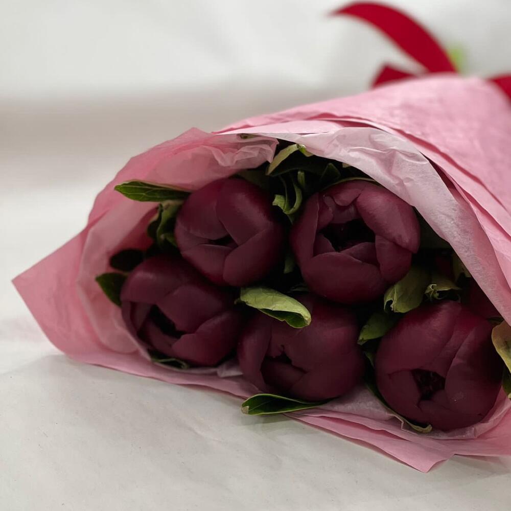 Лента – 1 шт.Пион Ред Шарм – 5 шт.Упаковка – 2 шт.