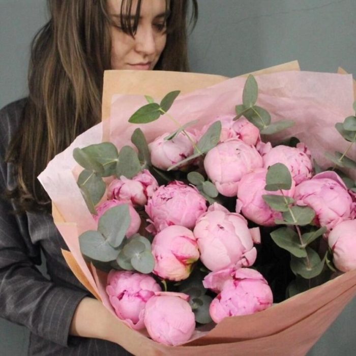Пион – 15 шт.Эвкалипт – 5 шт.Упаковка – 1 шт.