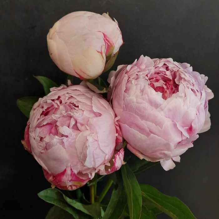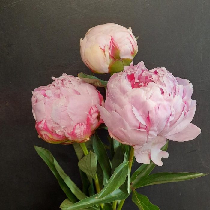 Минималистичный букет из 3 пионов сорта Sarah Bernardt