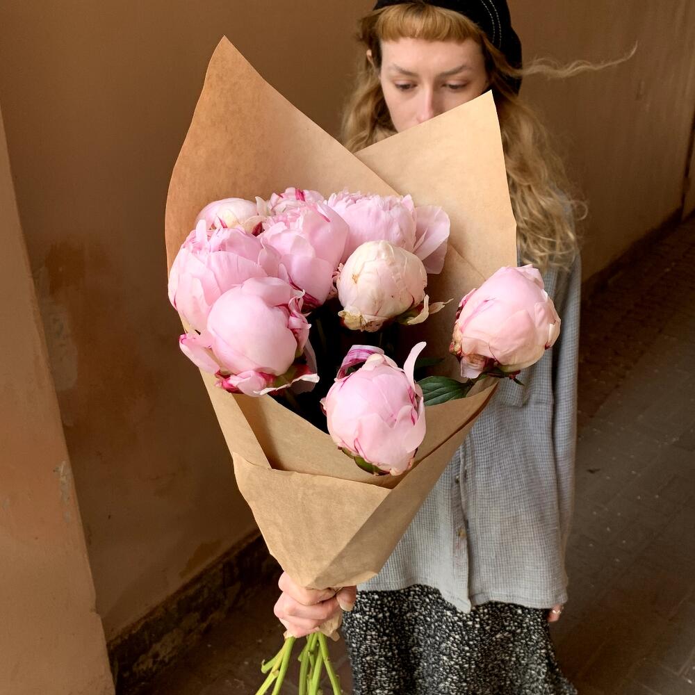 Крафтовая упаковка – 1 шт.пионы розовые – 9 шт.