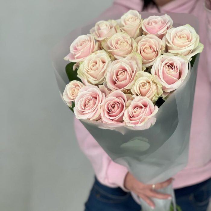 15 кустовых пионовидных роз сильва пинк. Букет 24 KimFlo