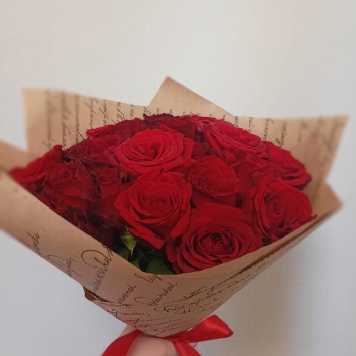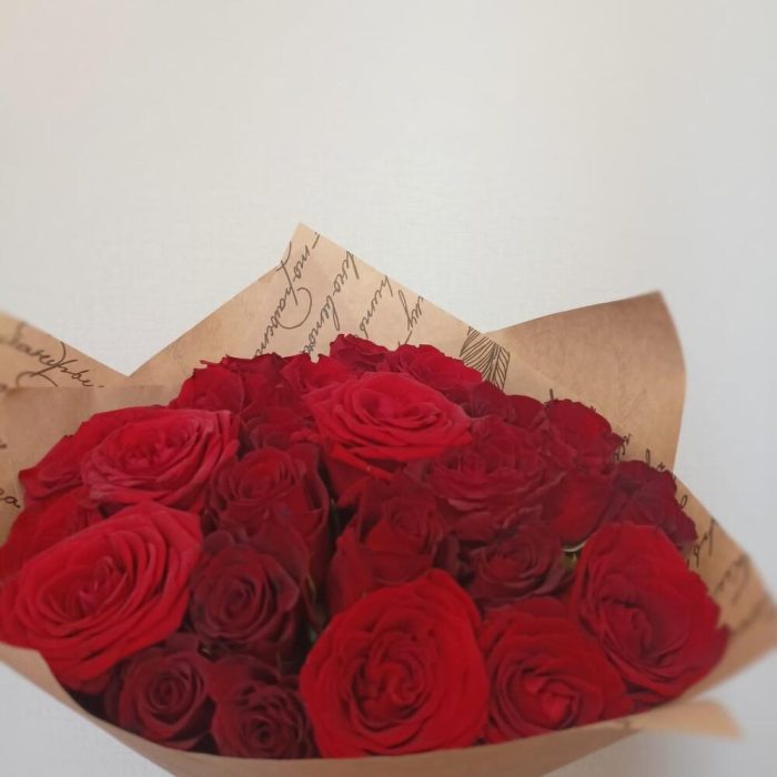 Роза – 25 шт.Упаковка дизайнерская – 1 шт.Лента атласная – 1 шт.
