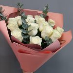 Роза mondial – 15 шт.Эвкалипт – 5 шт.Упаковка дизайнерская – 3 шт.