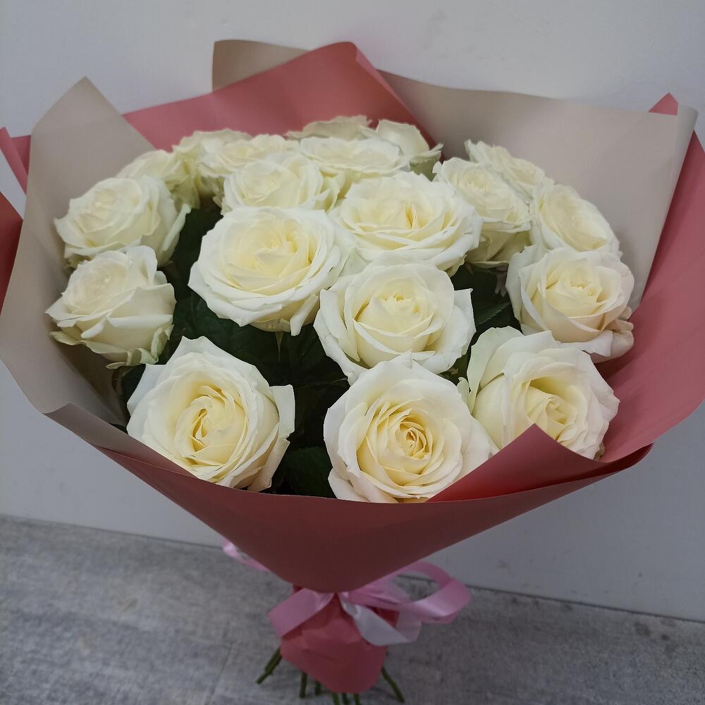 Лента атласная – 2 шт.Упаковка дизайнерская – 1 шт.Роза Россия 60 см – 19 шт.