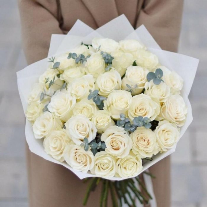 Роскошный букет из белоснежных роз Black edition