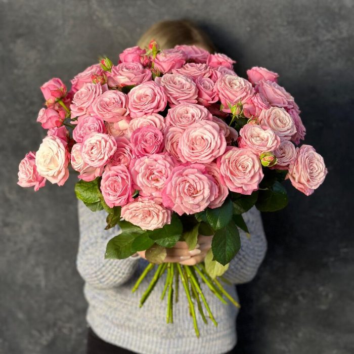 Лента атласная – 1 шт.роза кустовая пионовидная леди бомбастик – 25 шт.утеплитель букета – 1 шт.