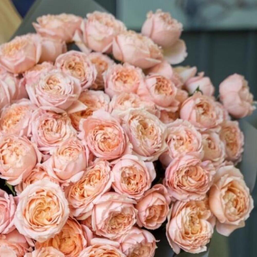 Букет из 31 пионовидной персиковой розы
