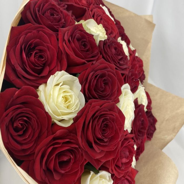 Красная роза – 25 шт.белая роза – 10 шт.