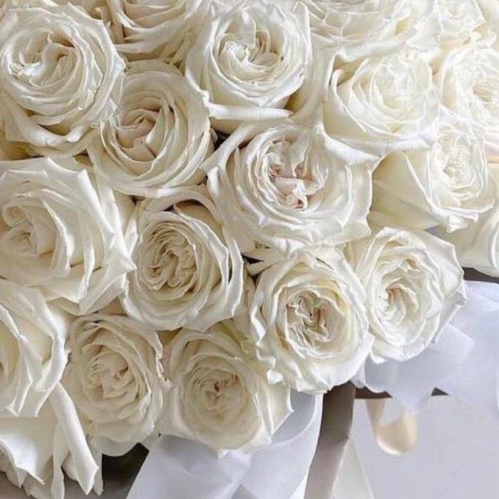 роза вайт о хара( ароматная) – 51 шт.Упаковка дизайнерская – 2 шт.Лента атласная – 2 шт.Открыточка с вашими пожеланиями – 1 шт.хорошее настроение – 100 шт.инструкция по уходу за цветами – 1 шт.коробка переноска – 1 шт.Кризал – 1 шт.