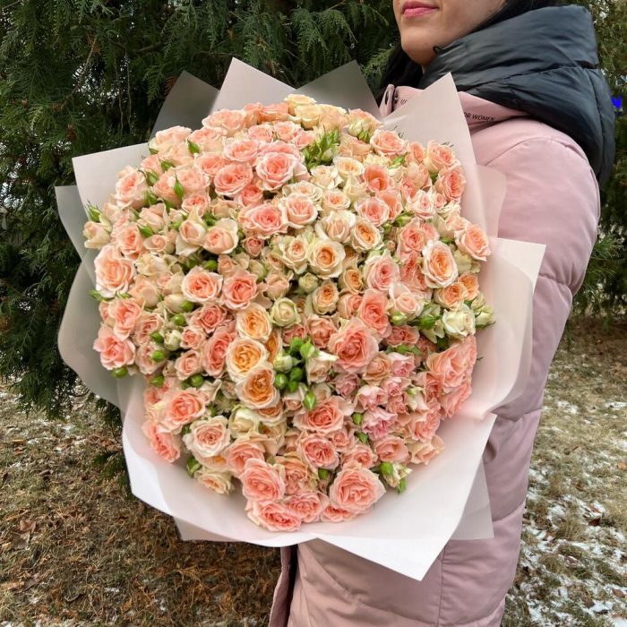 Роза кустовая – 51 шт.Пленка матовая – 2 шт.структурированны фаомиран – 3 шт.