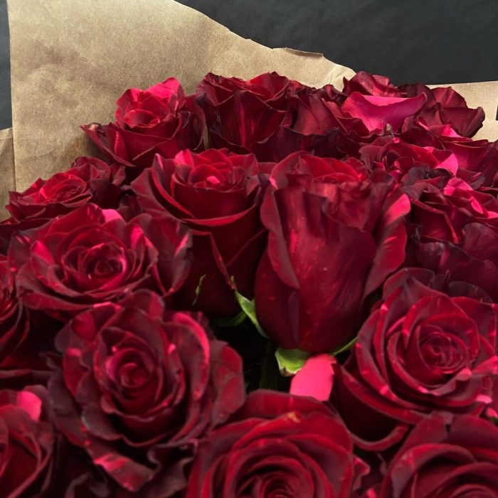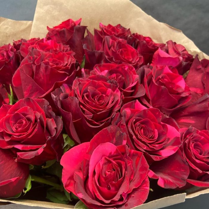 Лента – 1 шт.Роза красная – 23 шт.Упаковка – 2 шт.