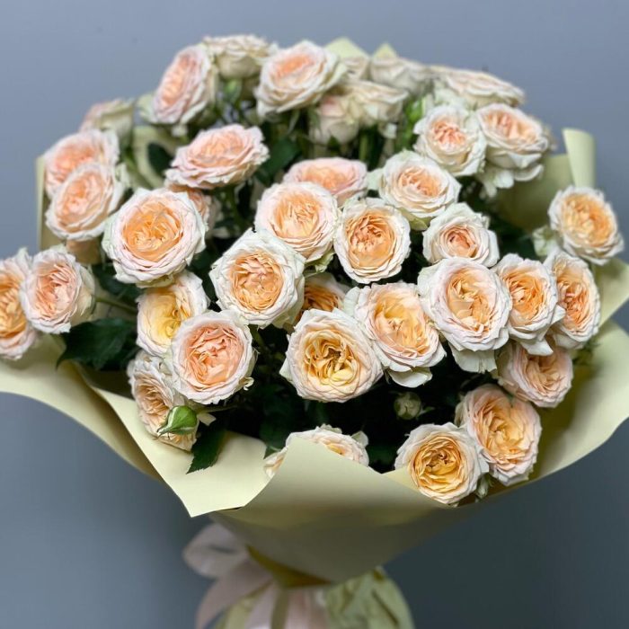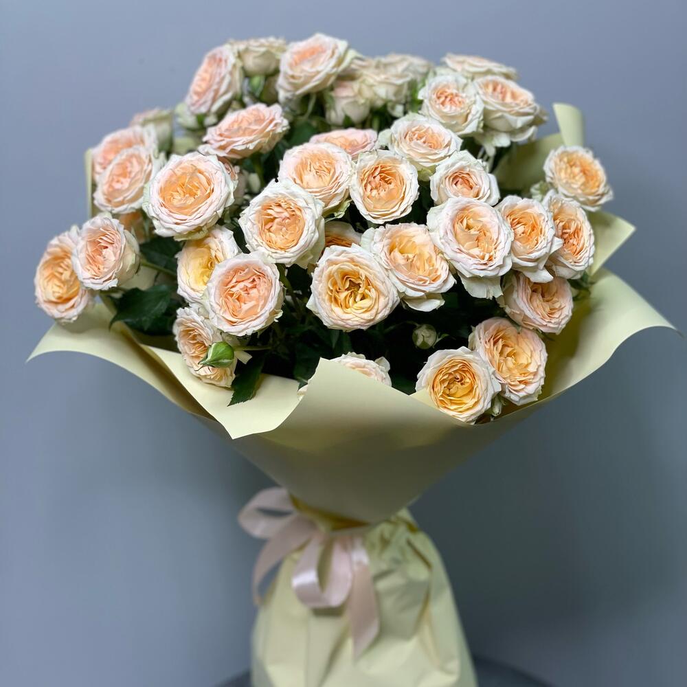 Букет из кустовых роз с оформлением