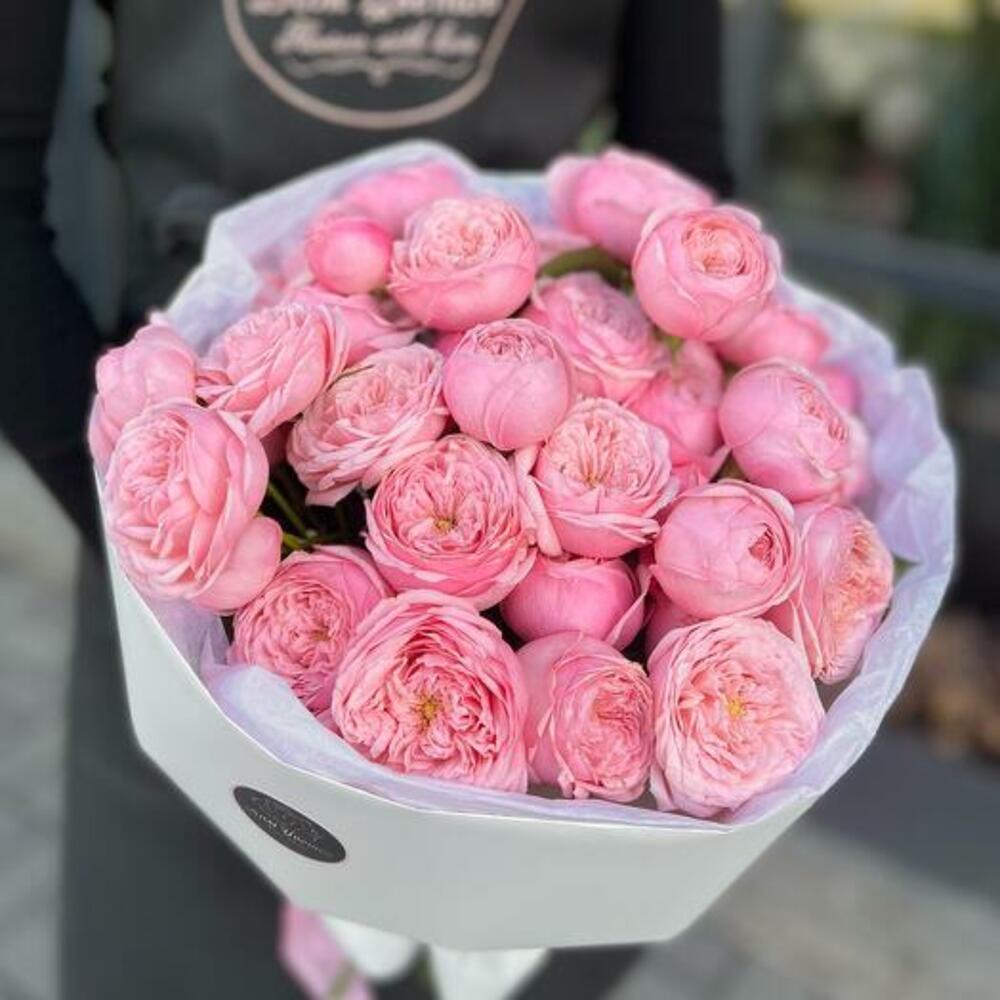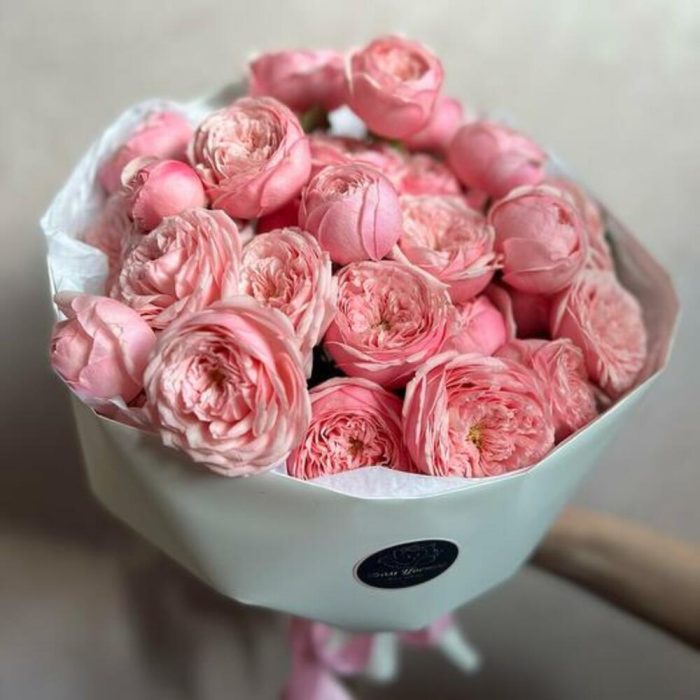 Кустовая пионовидная роза – 9 шт.декоративная упаковка – 1 шт.Атласная лента – 1 шт.
