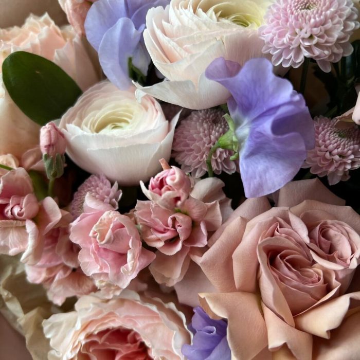 Букет из Пионовидный роз, Ранункулюсов и ароматных цветов