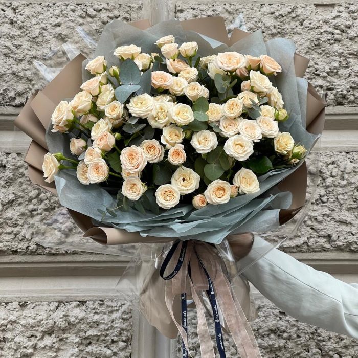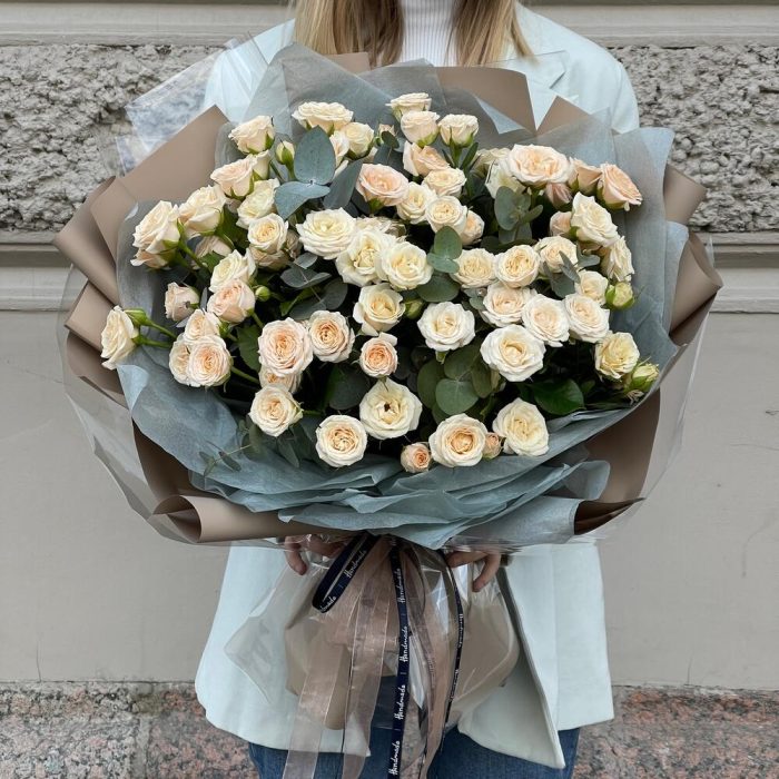 Букет с нежной кустовой розой «Кофейный Маршмэллоу XXL»