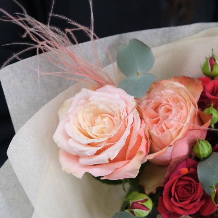 Букет с пионовидными розами Кахала и кустовыми розами