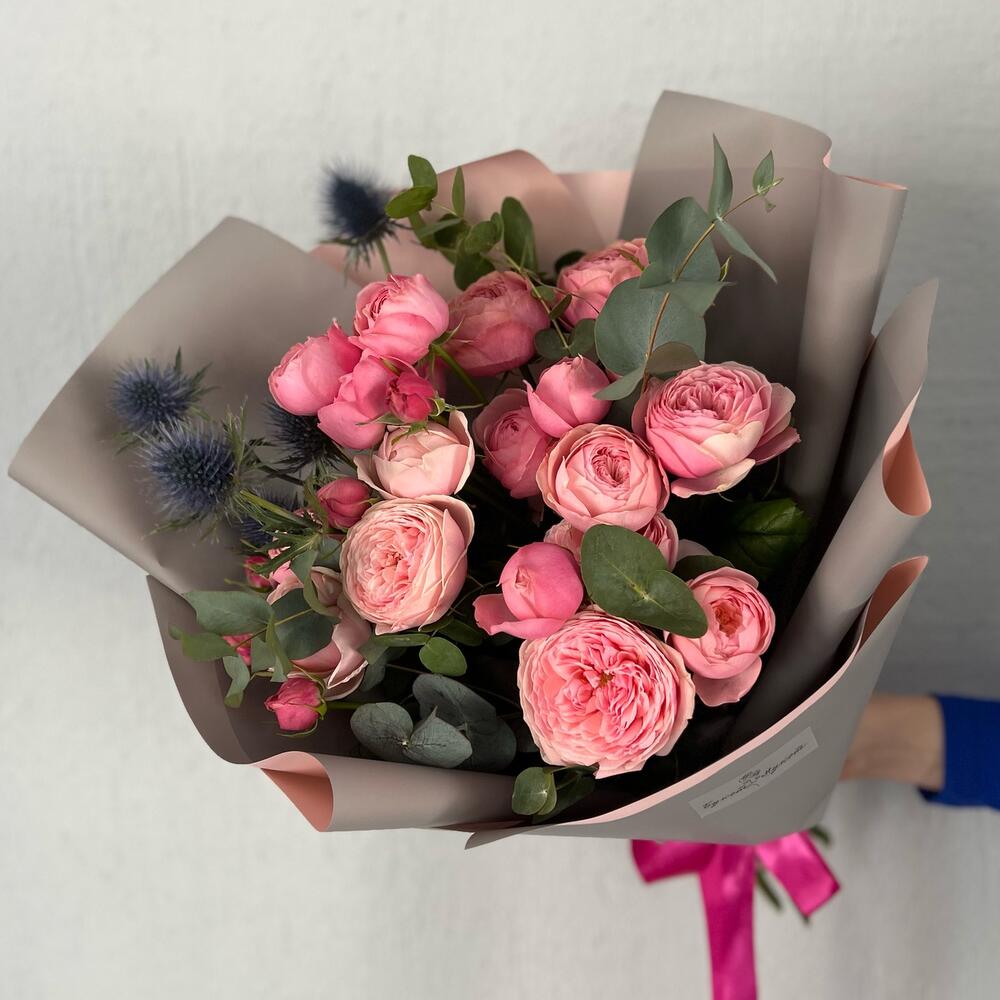 Гвоздики, Кустовые розы, Лизиантусы, Пионовидные розы, Розы