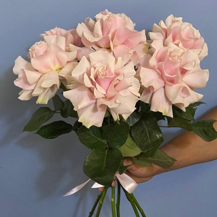 Французская роза – 7 шт.Лента атласная – 1 шт.