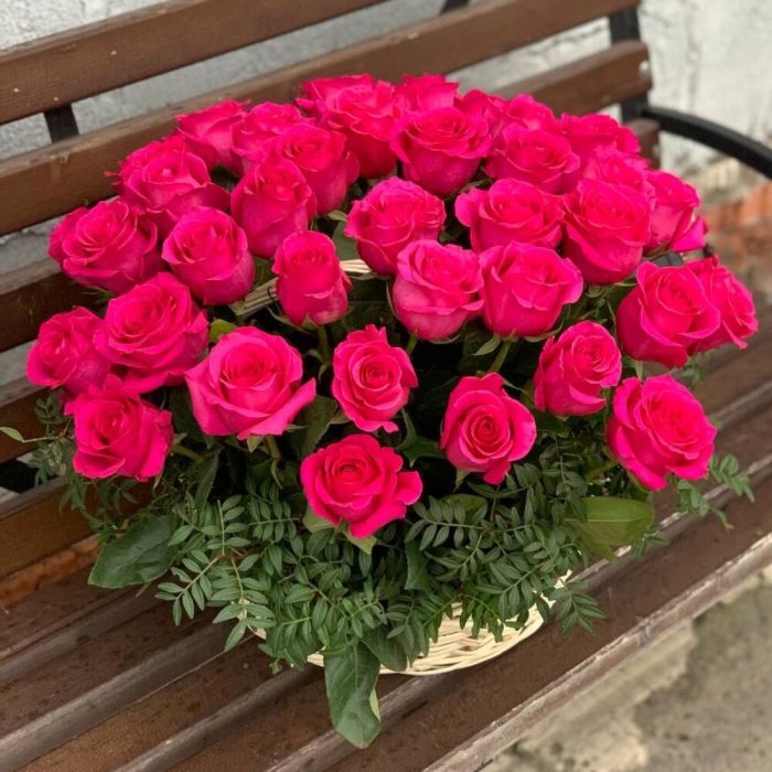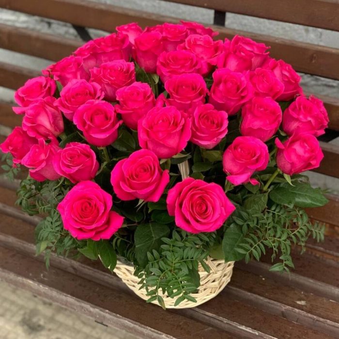 Оазис флористический – 3 шт.Фисташка – 6 шт.Корзина плетеная – 1 шт.Роза Эквадор – 43 шт.