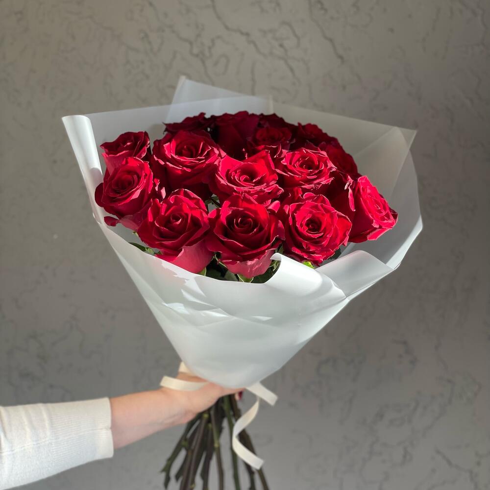 Роза Эквадор – 15 шт.Фирменная упаковка – 1 шт.